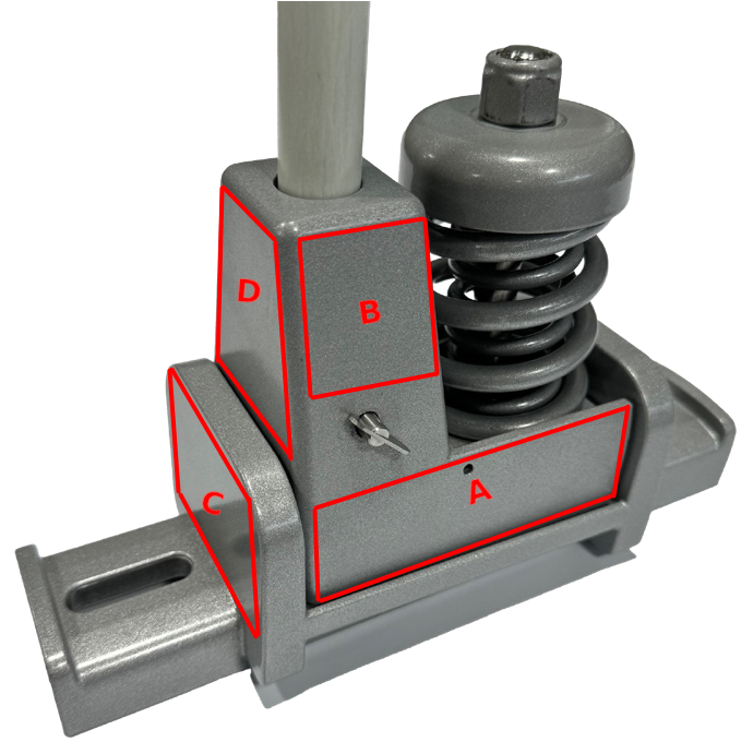 Uses 2 custom made springs, powder coated grey, so if 1 spring breaks, the other one will keep unit pivoting properly.